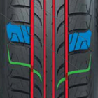 Два ребра по бокам от центрального имеют глубокие насечки, соединяющиеся с общей системой водоотведения | Способствует быстрому отведению излишней влаги из контактной зоны, защита от аквапланирования. |